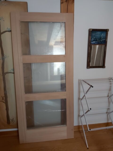 Out with the old and in with the new. Kristina and I wanted a new front door since we moved in almost 2 years ago. I re-keyed the dead bolt and the door handle to use the same key. But we still wanted a new entry door. Then a few months ago Kristina and I started to think about the replacement of the main entry door, some sticky French doors, and two windows above the French doors. We started small for now and decided to just do the main entry door. Here’s a side by side of the old main entry door and the future main entry door slab.
